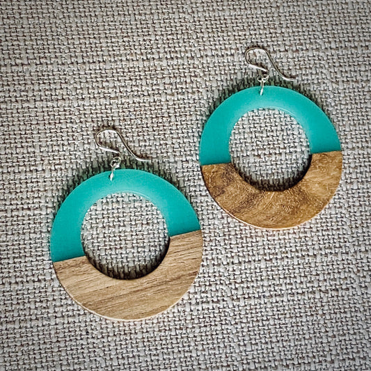Modern Boho - Large Open Circle - Wood Resin Drop Earrings