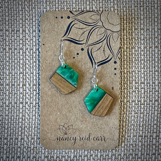 Modern Boho Collection - Pentagon Drop Earrings Wood/Resin