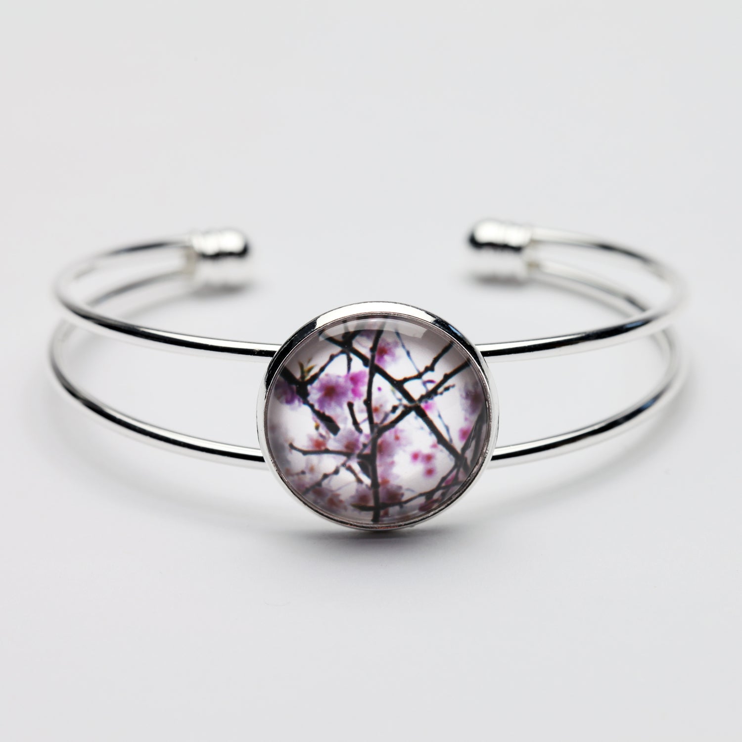 Bangle Bracelets in our Nature Collection are designed using original metallic photographs that are set by hand under a 20mm magnifying glass dome. Pair with the matching necklace and add either the post or drop earrings to complete the set. Or mix and match designs from the collection to create your own style. Silver plated brass. Nickel and lead free.