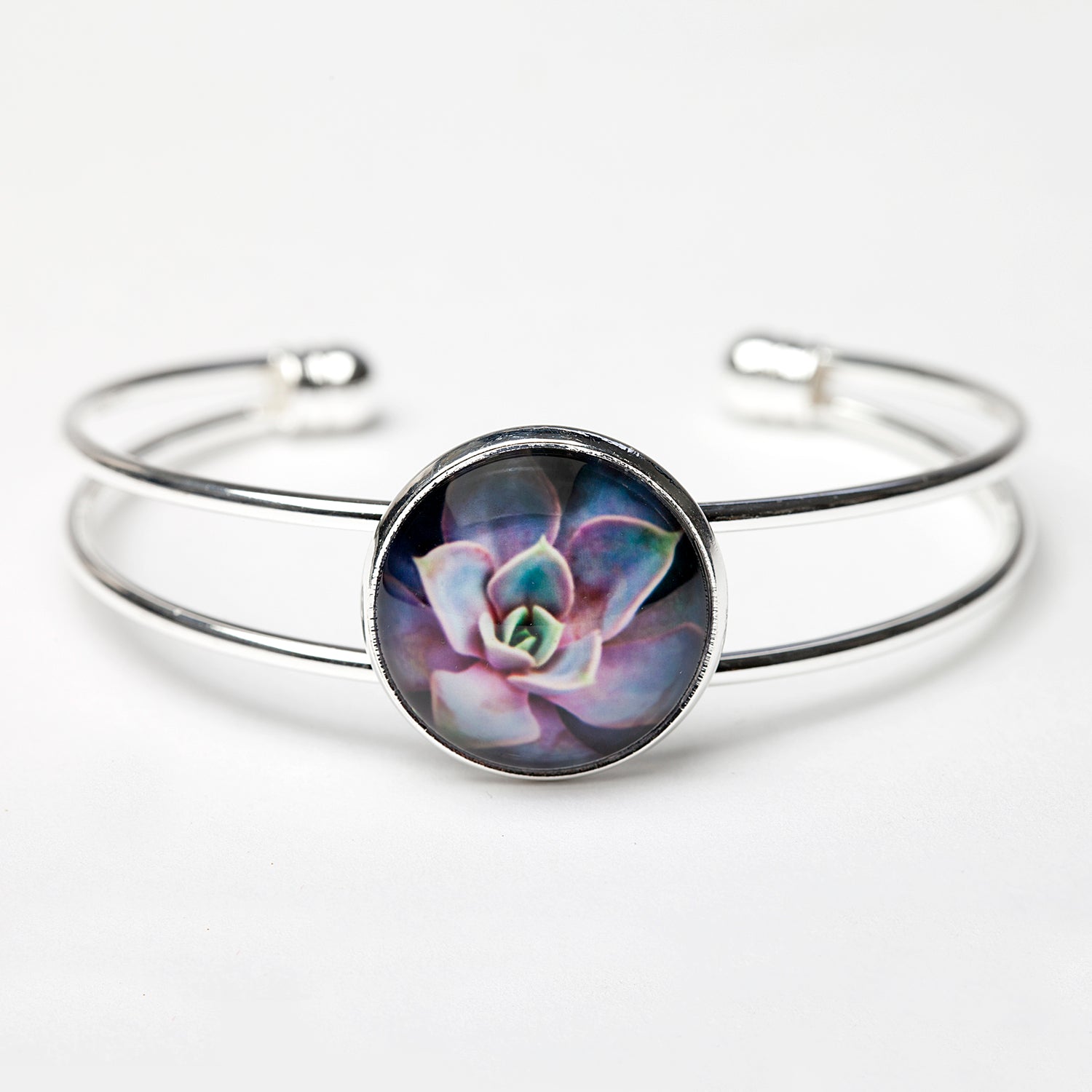 Bangle Bracelets in our Nature Collection are designed using original metallic photographs that are set by hand under a 20mm magnifying glass dome. Pair with the matching necklace and add either the post or drop earrings to complete the set. Or mix and match designs from the collection to create your own style. Silver plated brass. Nickel and lead free.