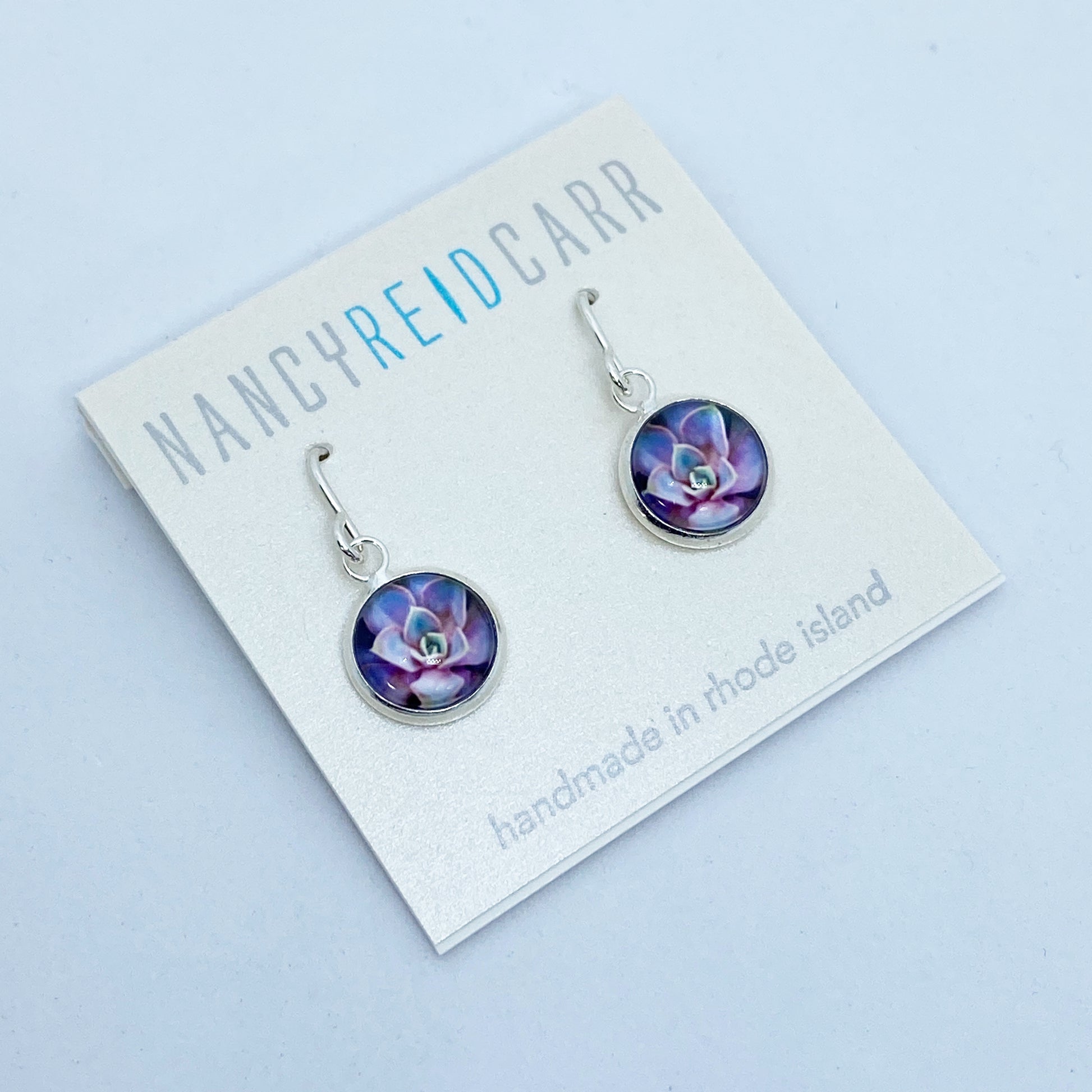 The Drop Earrings in our Nature Collection are designed using original photographs that are set by hand under a 16mm or 10mm dome magnifying glass. These earrings can be paired with the matching necklace, bangle bracelet or a coordinating thin or wide cuff bracelet. Or mix and match designs from the Water Collection to create your own style. The ear wires are sterling silver. Nickel and lead free.