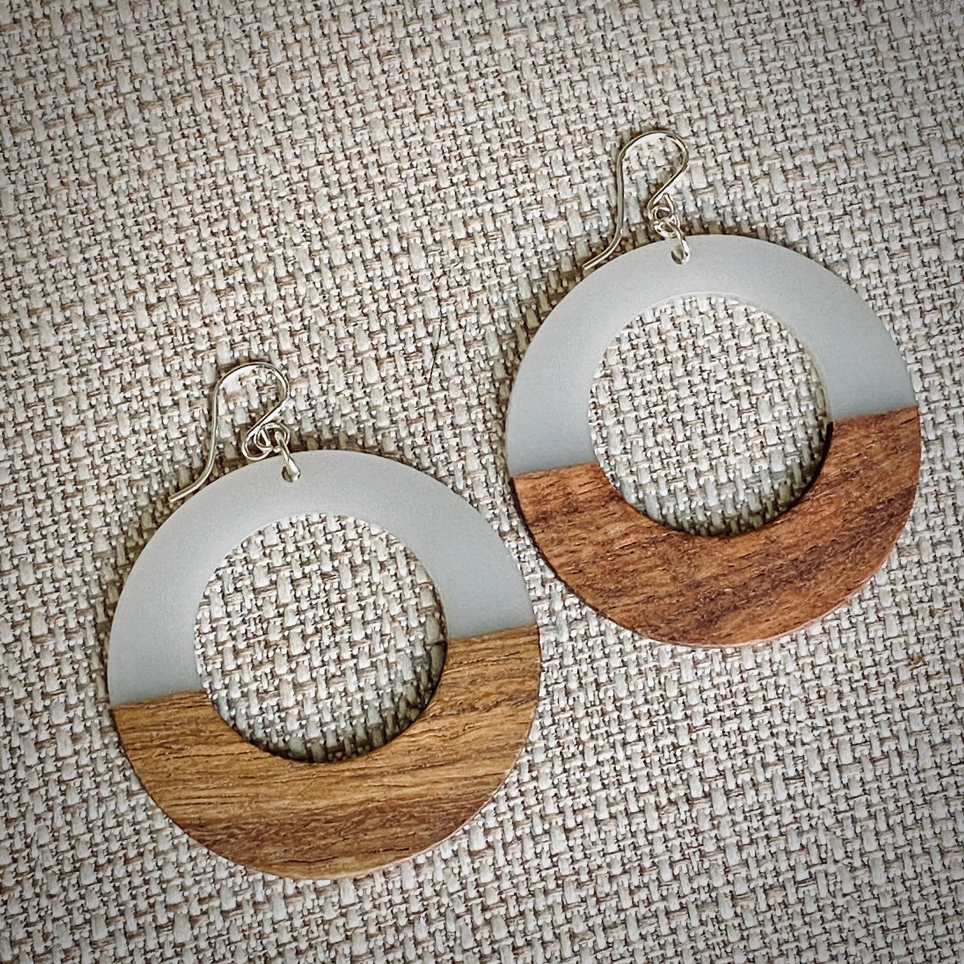 Modern Boho - Large Open Circle - Wood Resin Drop Earrings