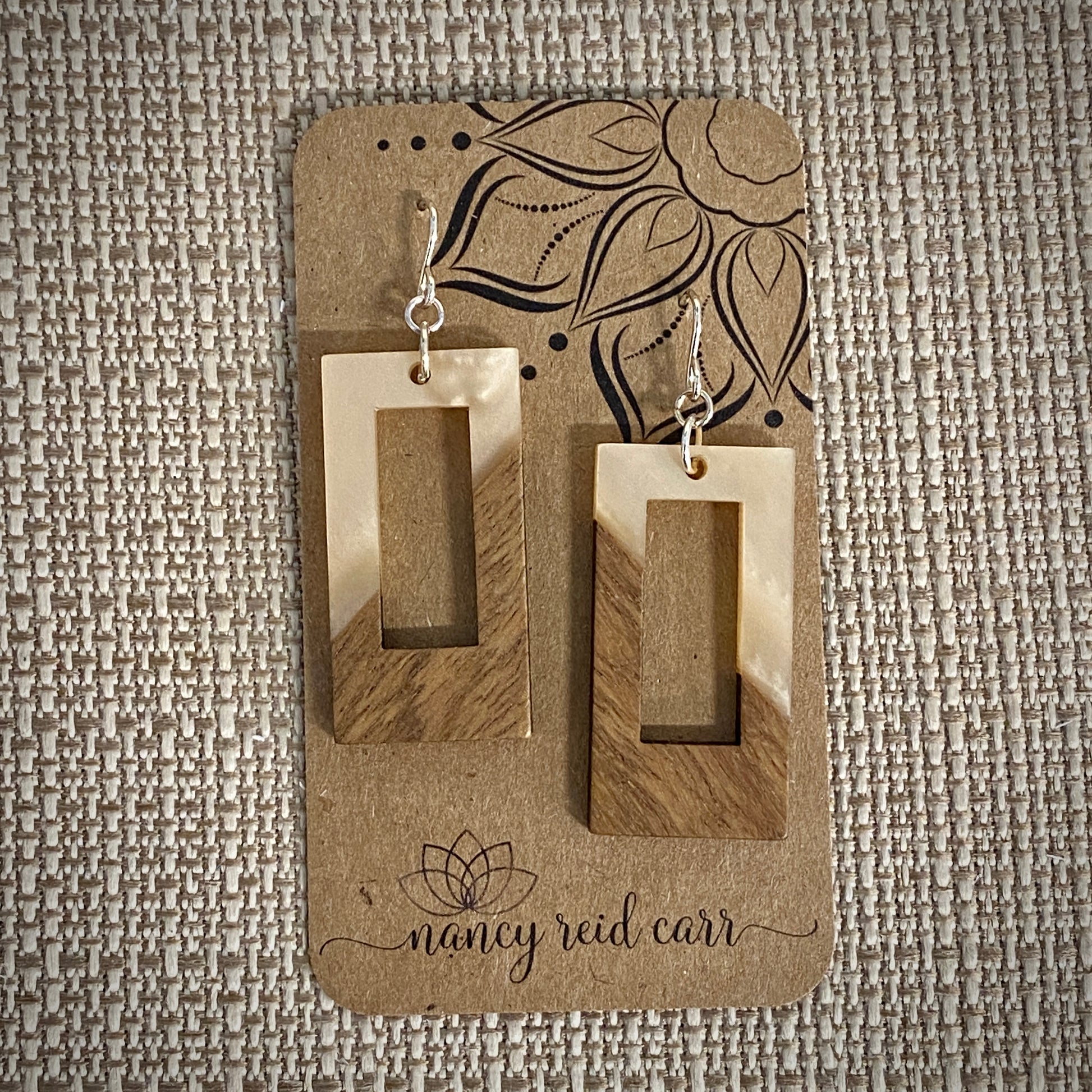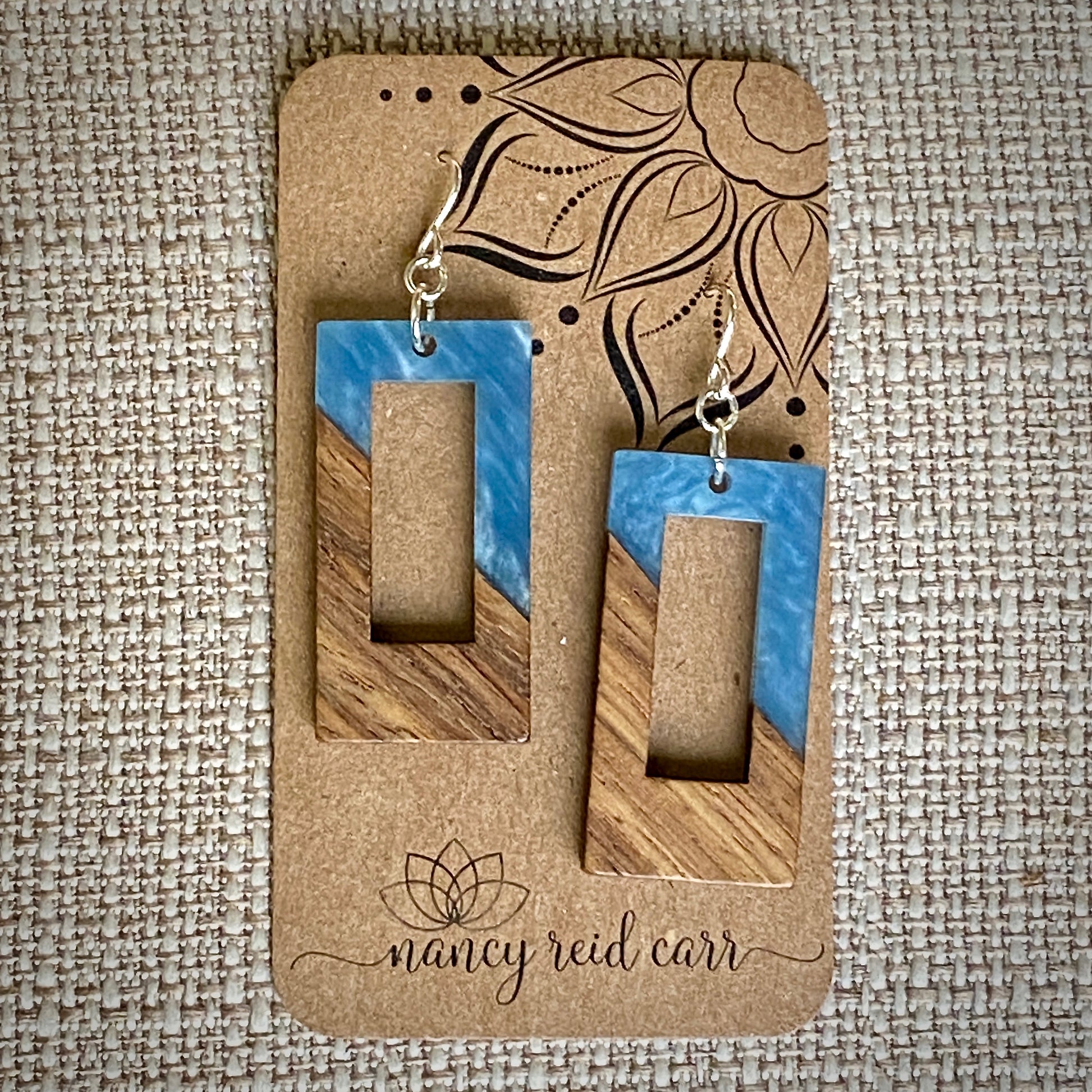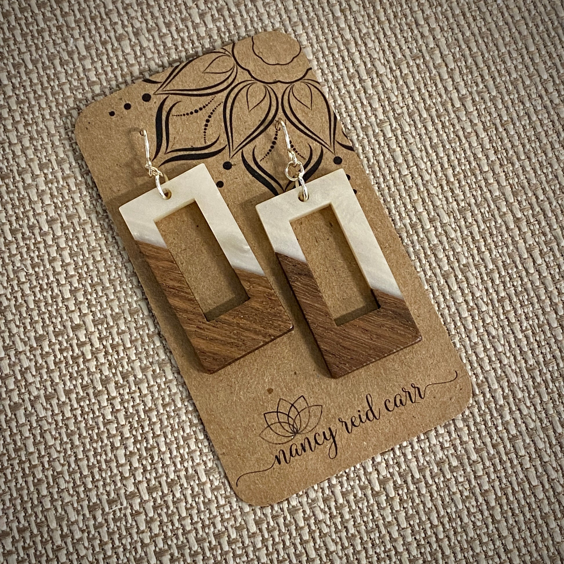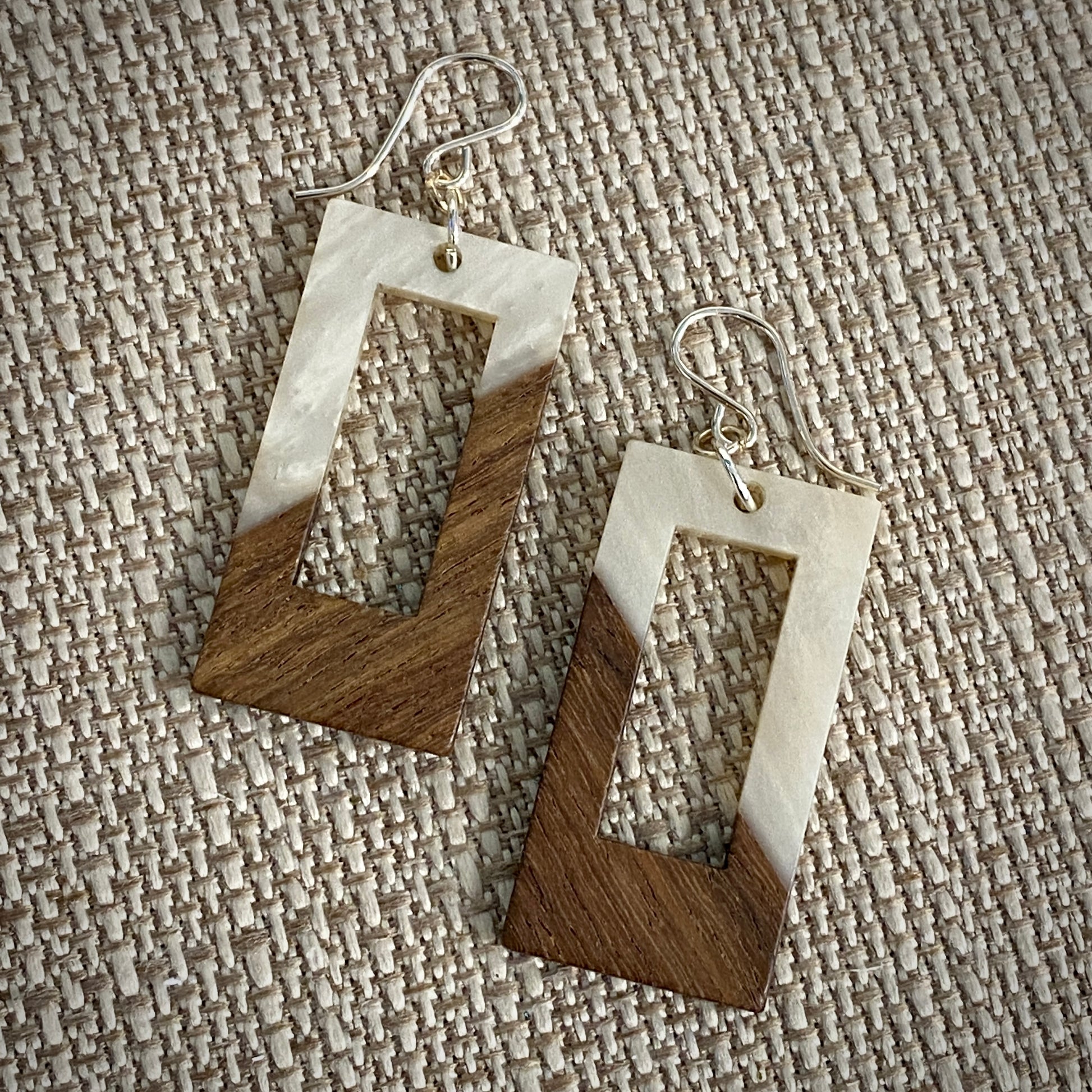 Modern Boho - Open Rectangle - Wood & Resin Drop Earrings