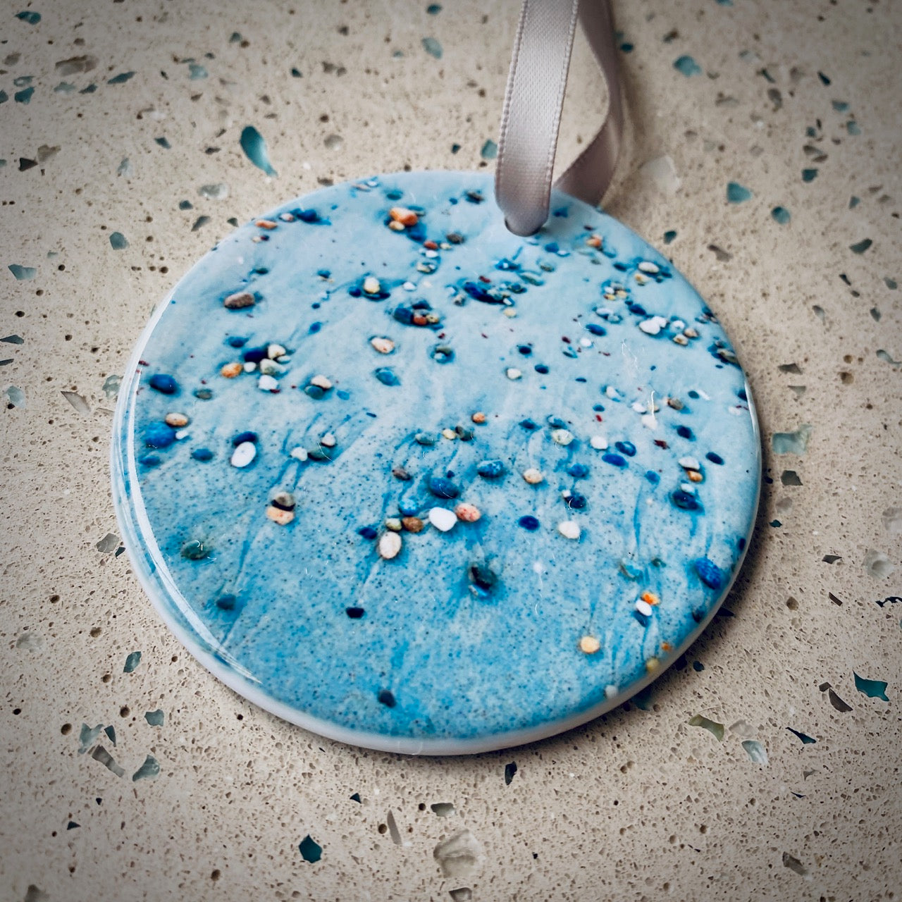 This porcelain ornament makes a perfect gift and looks great hanging on the tree or in a window year-round. It has a nice weight, smooth edges and feels solid in your hand. Designed using one of my original photographs and printed on both sides, it measures 3 inches in diameter. Comes in a gift box with a neutral gray or white ribbon. Handmade in Rhode Island.