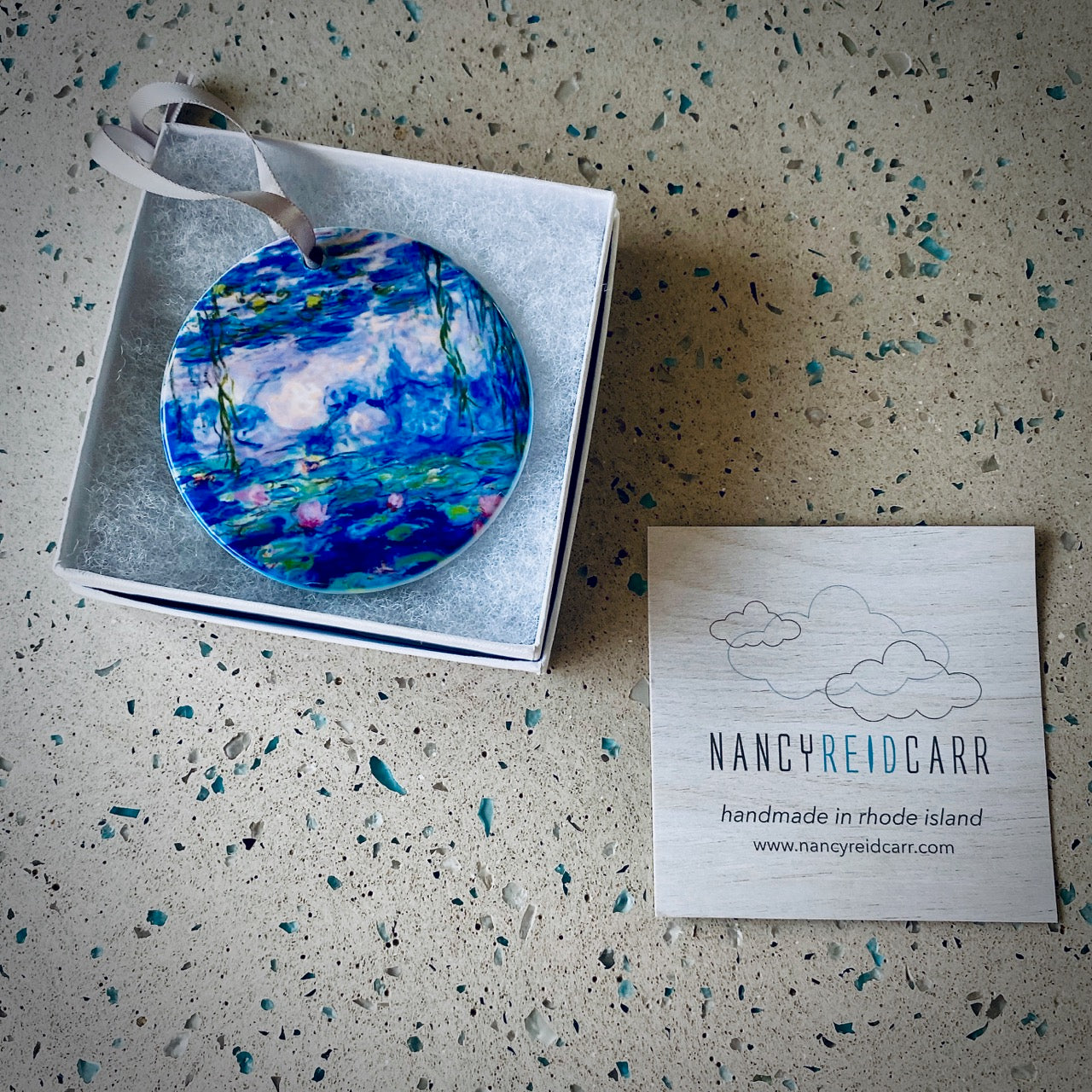 This porcelain ornament makes a perfect gift and looks great hanging on the tree or in a window year-round. It has a nice weight, smooth edges and feels solid in your hand. Designed using one of my original photographs and printed on both sides, it measures 3 inches in diameter. Comes in a gift box with a neutral gray or white ribbon. Handmade in Rhode Island.