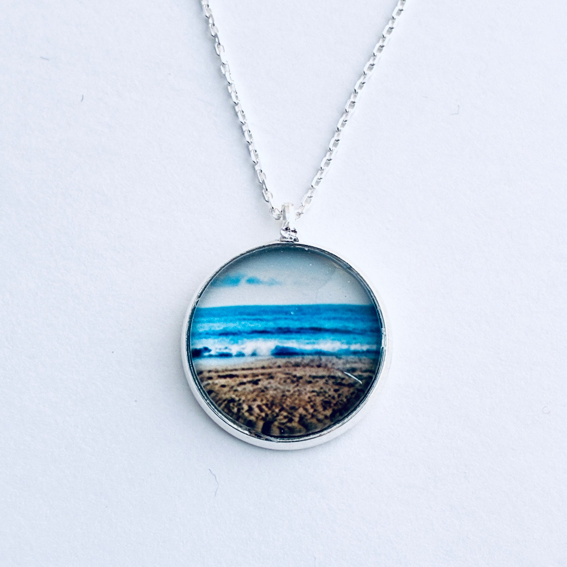 Discover the serene beauty of our Water Collection. Each necklace features an original photograph, captured and preserved beneath a 16mm magnifying glass dome, then set by hand for a one-of-a-kind finish.